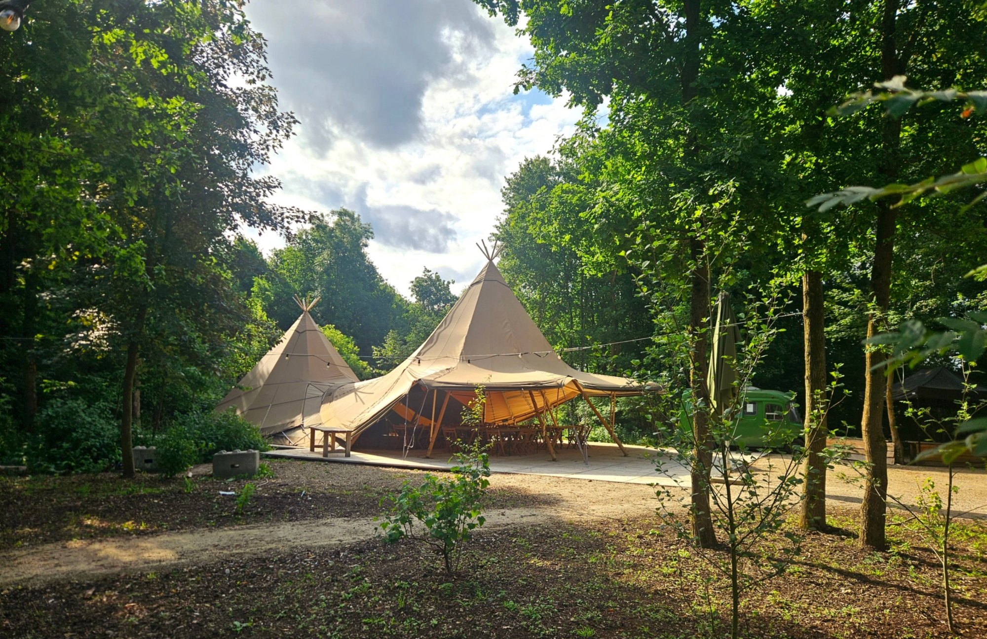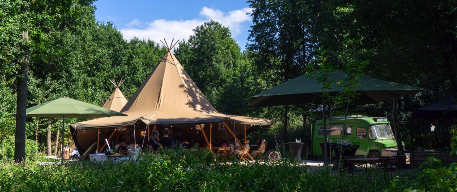 De Voliere is onze overdekte buitenlocatie met twee geschakelde Nordic Tipi’s en eigen bierbus. Een unieke plek die het hele jaar rond beschikbaar is met mogelijkheden tot verschillende buffetten, drankarrangementen en meer. Het biedt alle ruimte voor grotere evenementen zoals bruiloften, presentaties, (bedrijfs)borrels, feestje en diners.